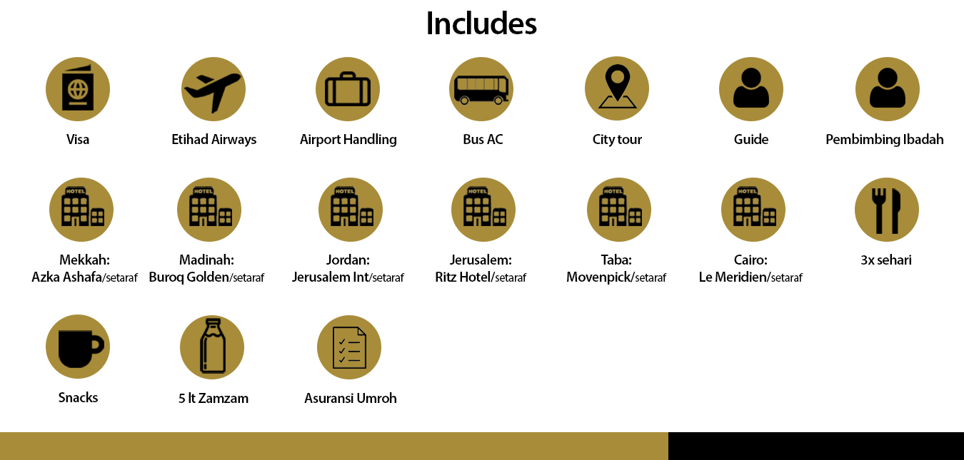 Ziarah ke tempat-tempat bersejarah di kota Mekkah ( Mina, Arafah, Muzdalifah, Jabal Nur, Jabal Tsur dan Gua Hiro ) ( Bagi yang akan melaksanakan Umroh kedua sudah berpakaian putih untuk Wanita & Pria membawa kain Ihrom, Miqot di Mesjid Ji’ronah )